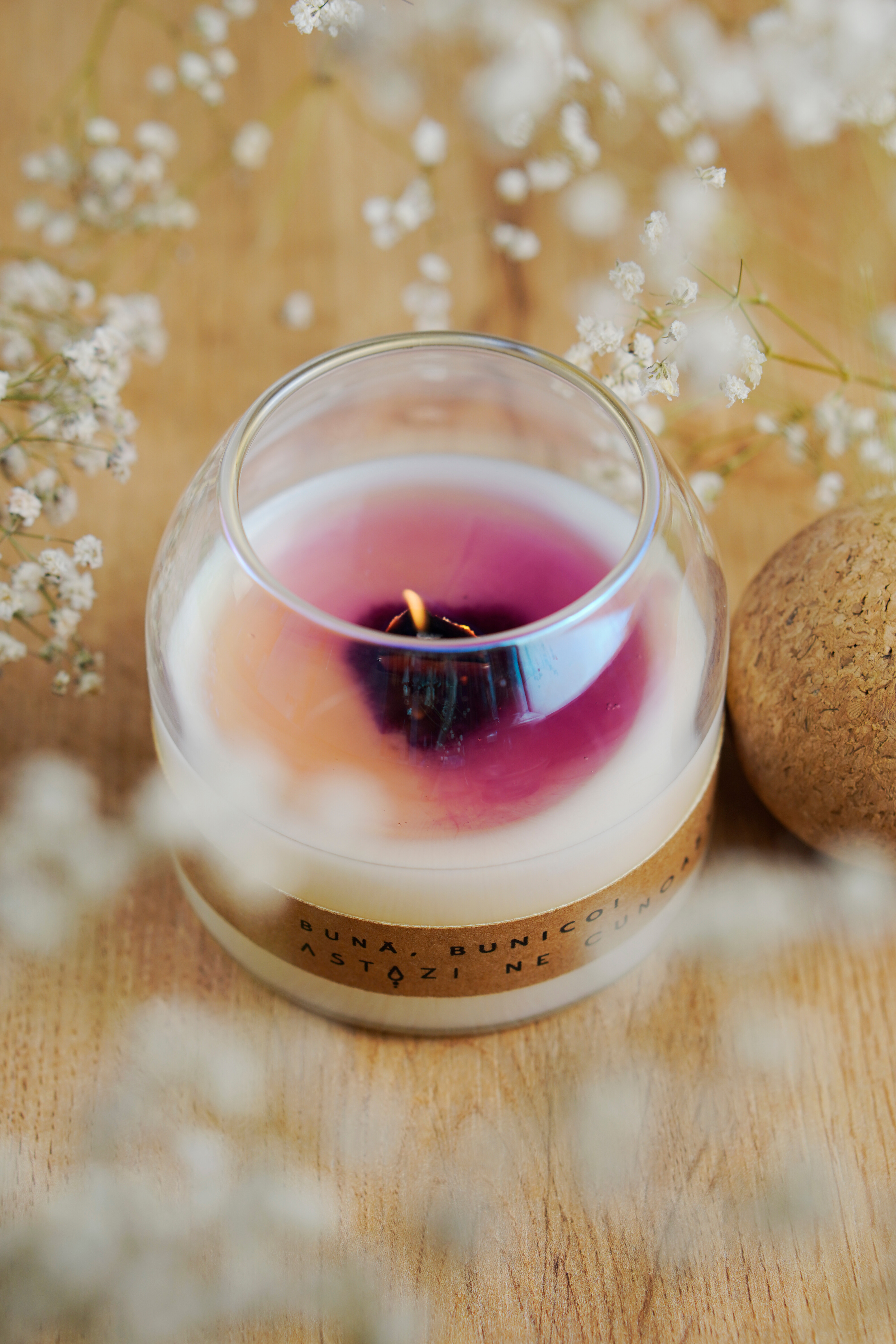 Materiale: ceară soia și cocos, fitil lemn, capac și recipient reutilizabil