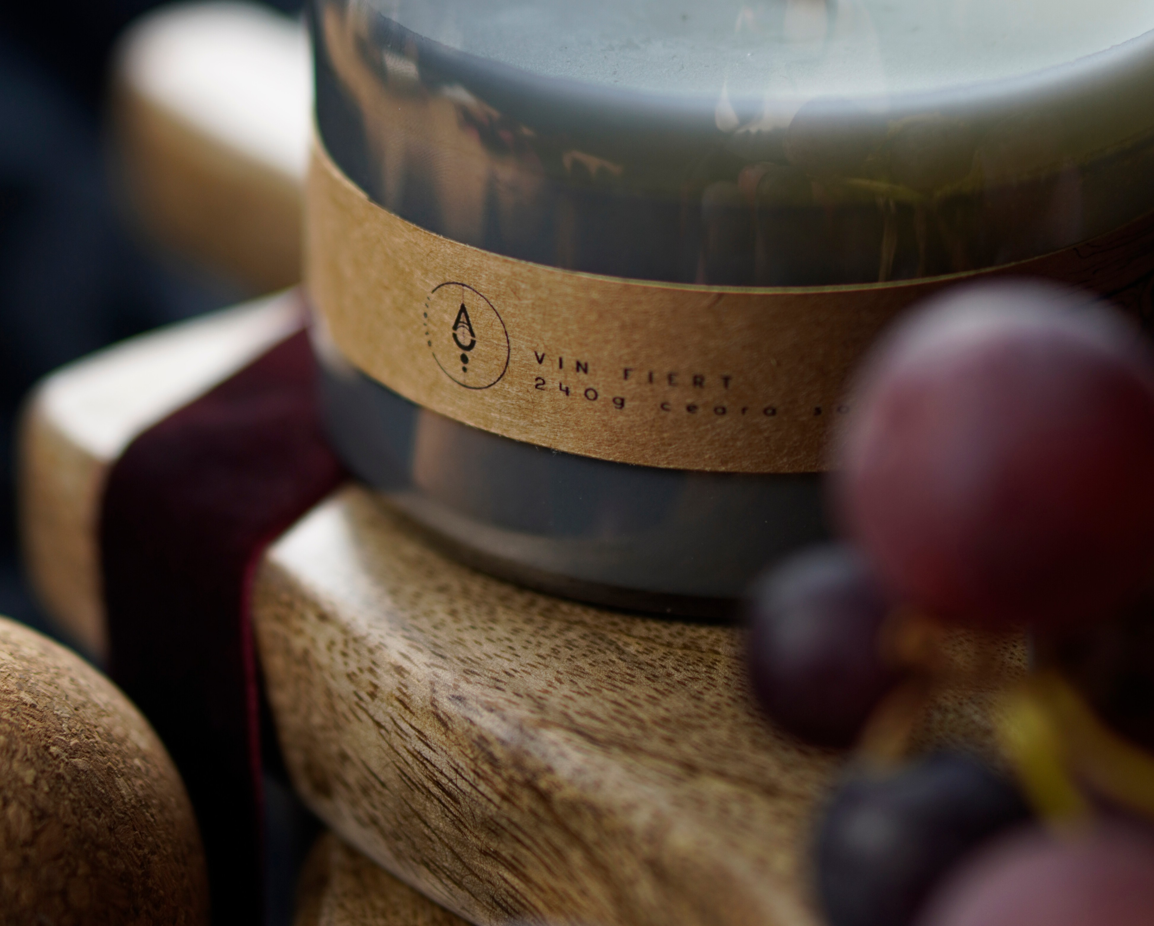 Materiale: ceară soia și cocos, fitil lemn, recipient reutilizabil