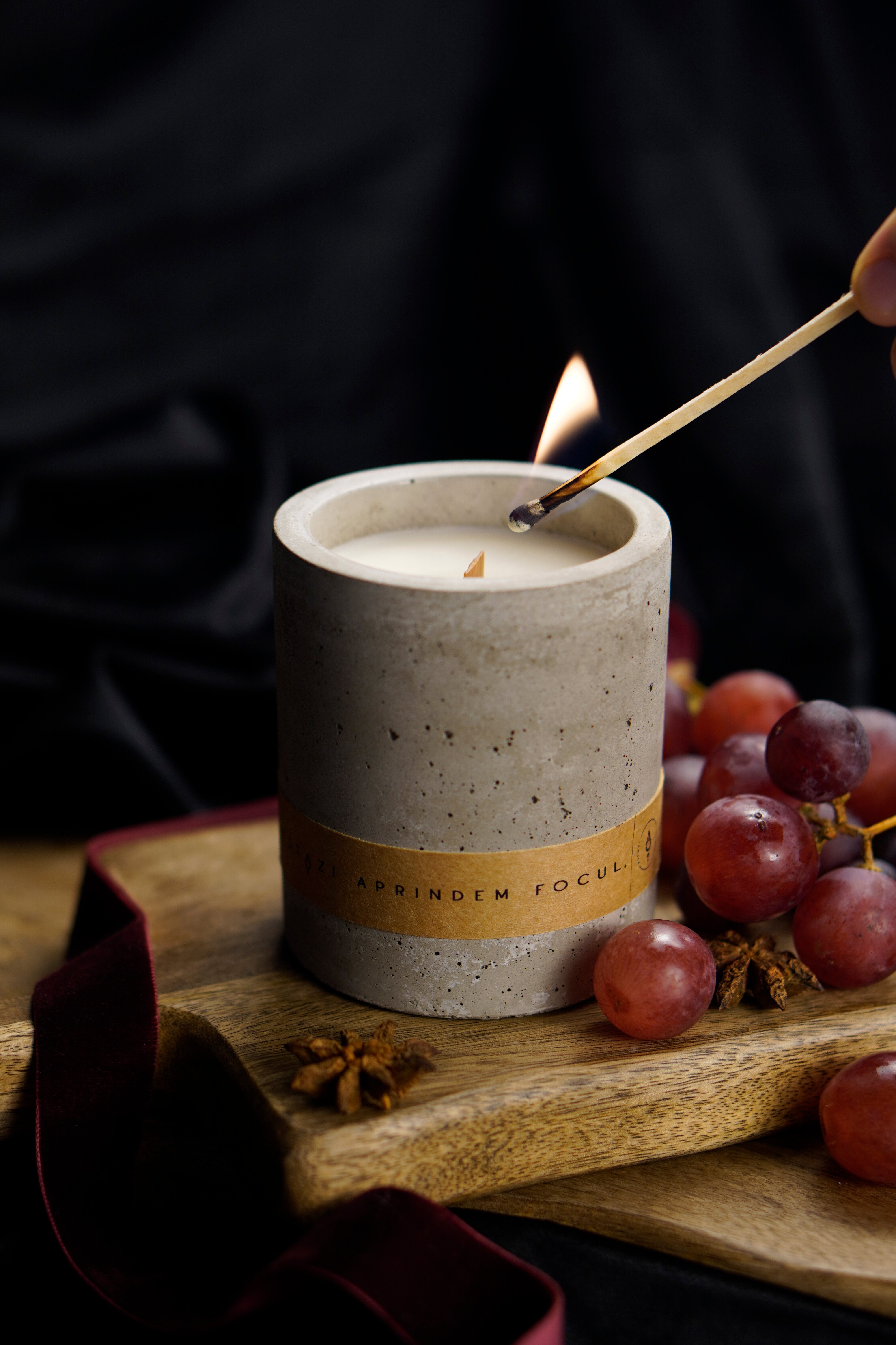 02. Tăiați sau rupeți partea arsă a fitilului, cu grijă ca funinginea să nu ajungă în ceară, la o lungime de aproximativ 5 mm înainte de fiecare reaprindere pentru a asigura o ardere curată și o flacară echilibrată. Aprindeți lumânarea pe o suprafață rezistentă la căldură, într-un loc vizibil, departe de curenți de aer, copii și animale de companie.