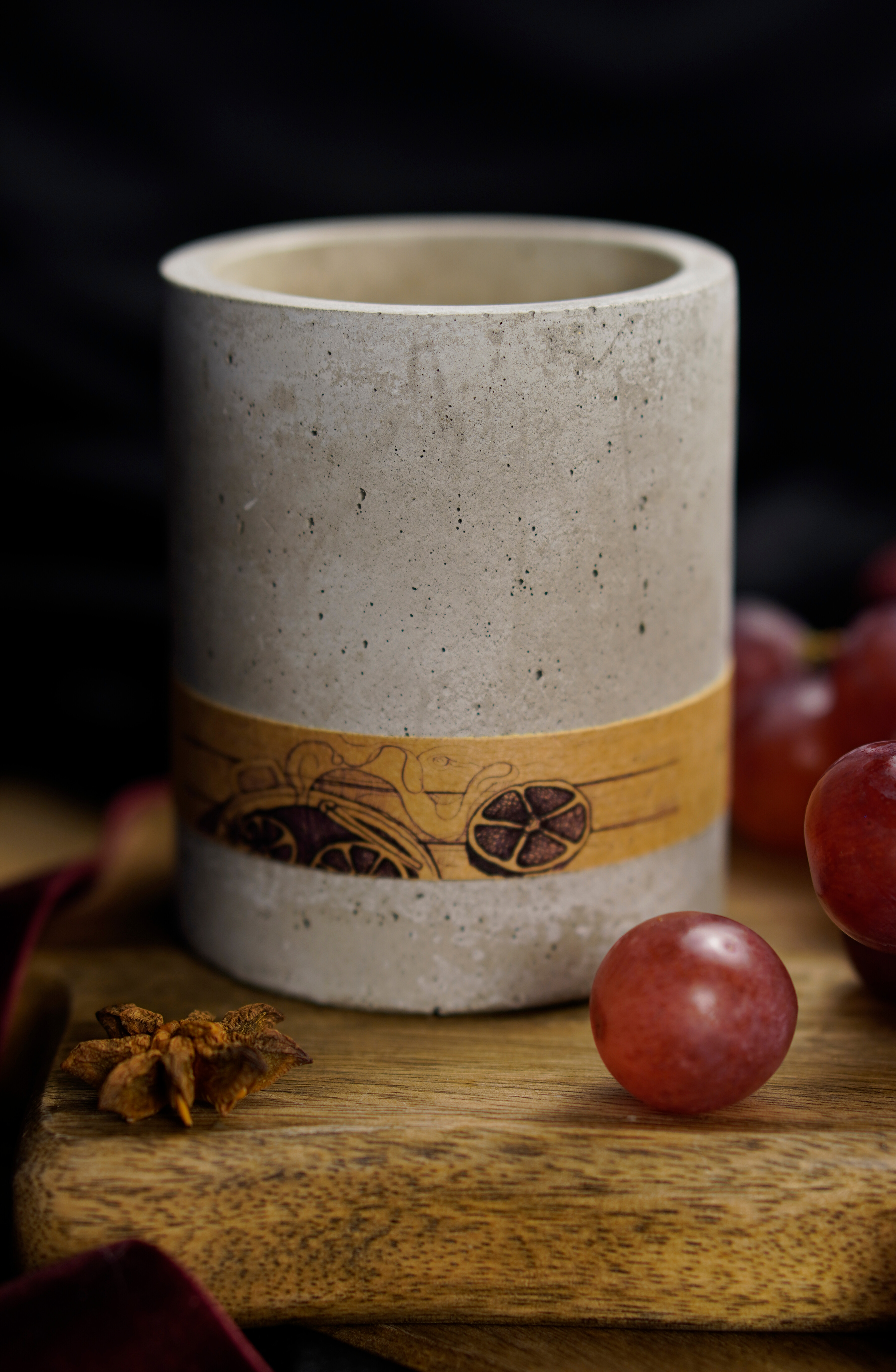 Simt să aprind focul mai des și serile devin mai calde, îmbătate de aroma vinului fiert, condimentat și dulce. Iarna devine mai blândă. Parfumul debutează cu struguri roșii și mere verzi, proaspete și clare și se încheie cu o bază caldă de condimente de iarnă și vanilie, ca o seară în care nu te mai grăbești nicăieri.