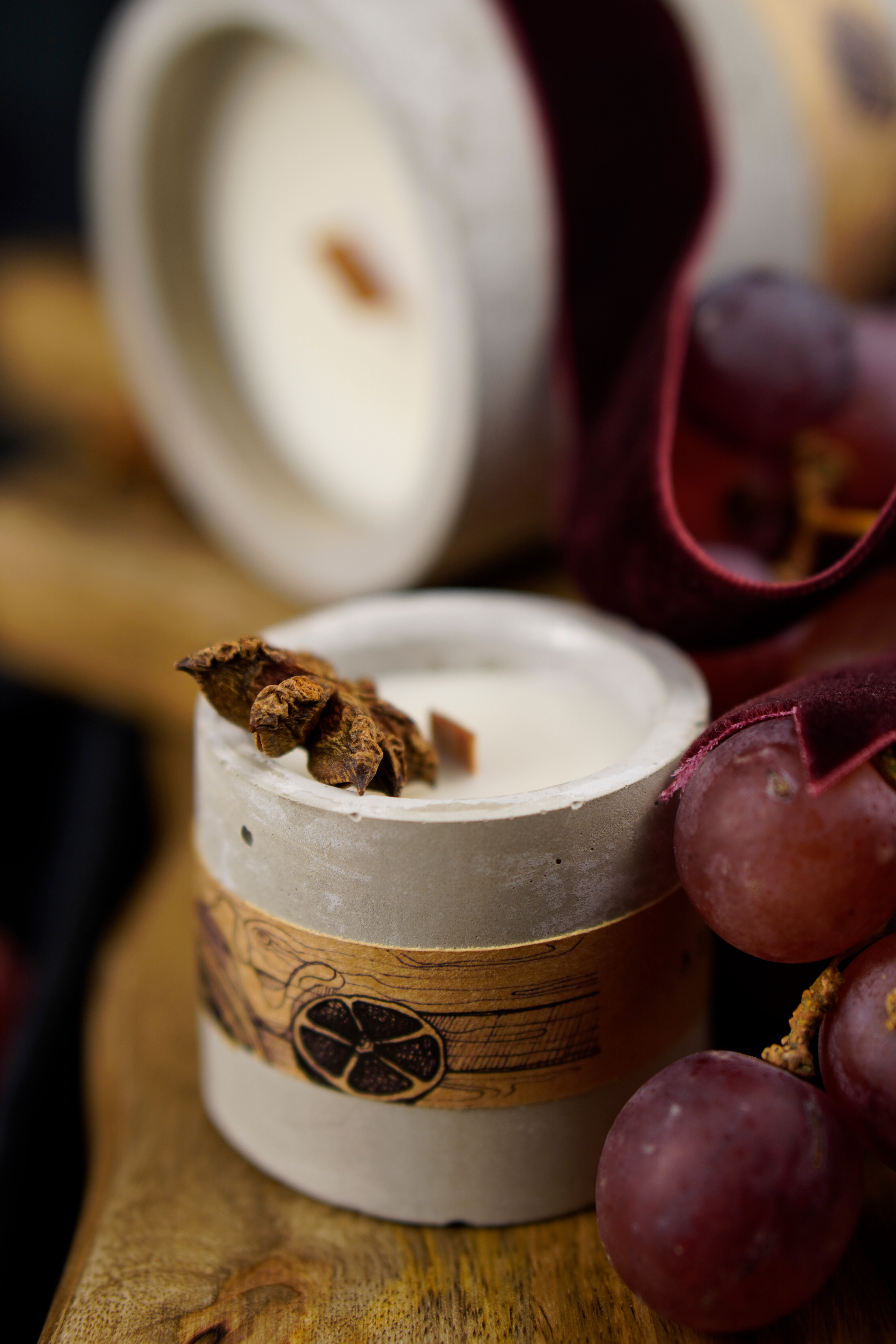 Materiale: ceara soia și cocos, fitil lemn