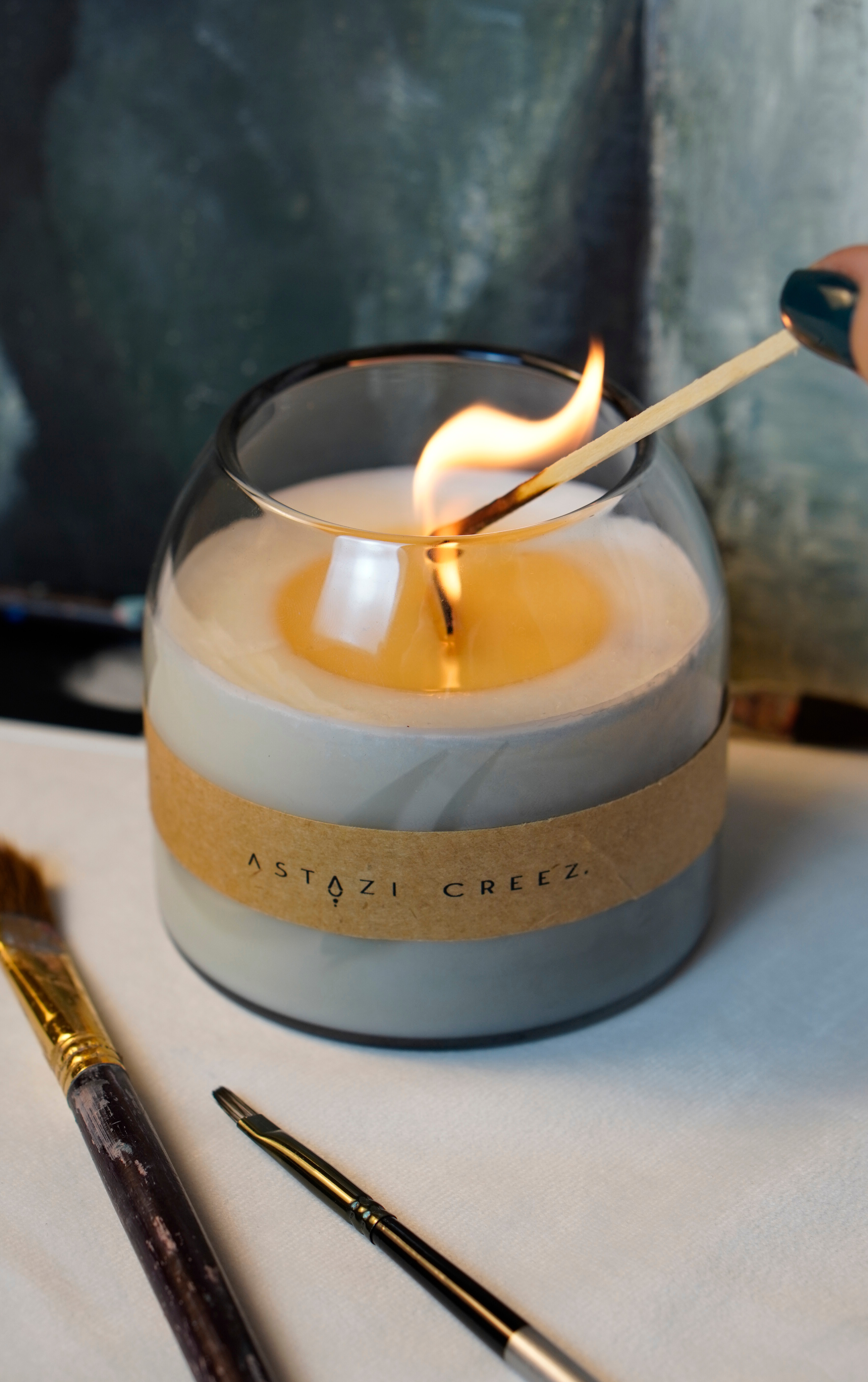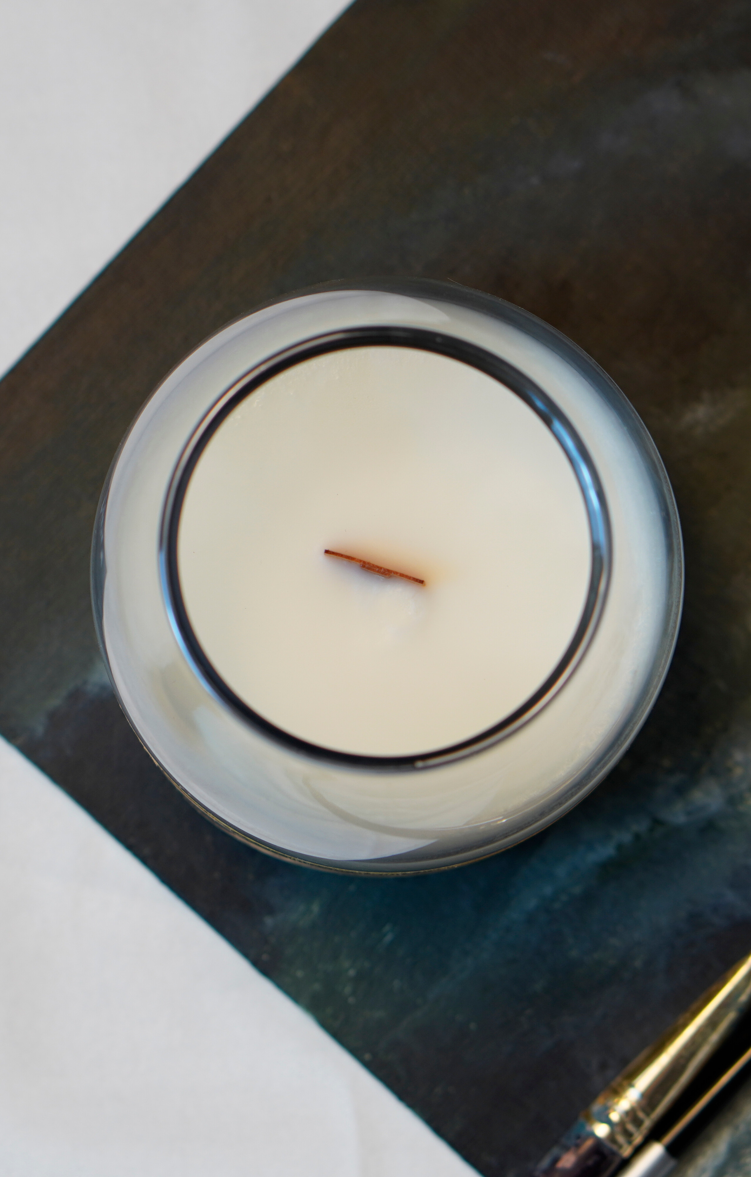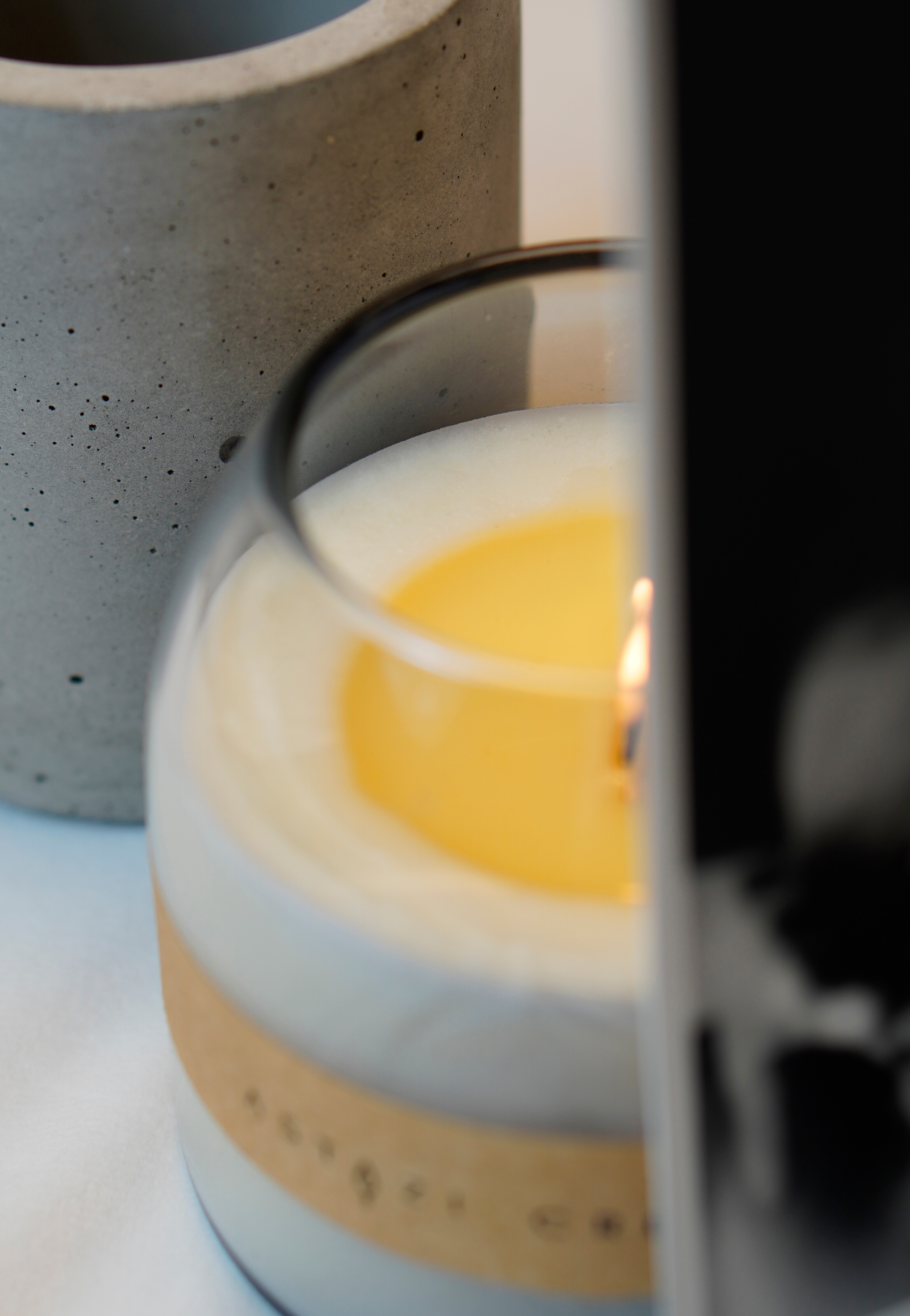 02. Tăiați sau rupeți partea arsă a fitilului, cu grijă ca funinginea să nu ajungă în ceară, la o lungime de aproximativ 5 mm înainte de fiecare reaprindere pentru a asigura o ardere curată și o flacară echilibrată. Aprindeți lumânarea pe o suprafață rezistentă la căldură, într-un loc vizibil, departe de curenți de aer, copii și animale de companie.