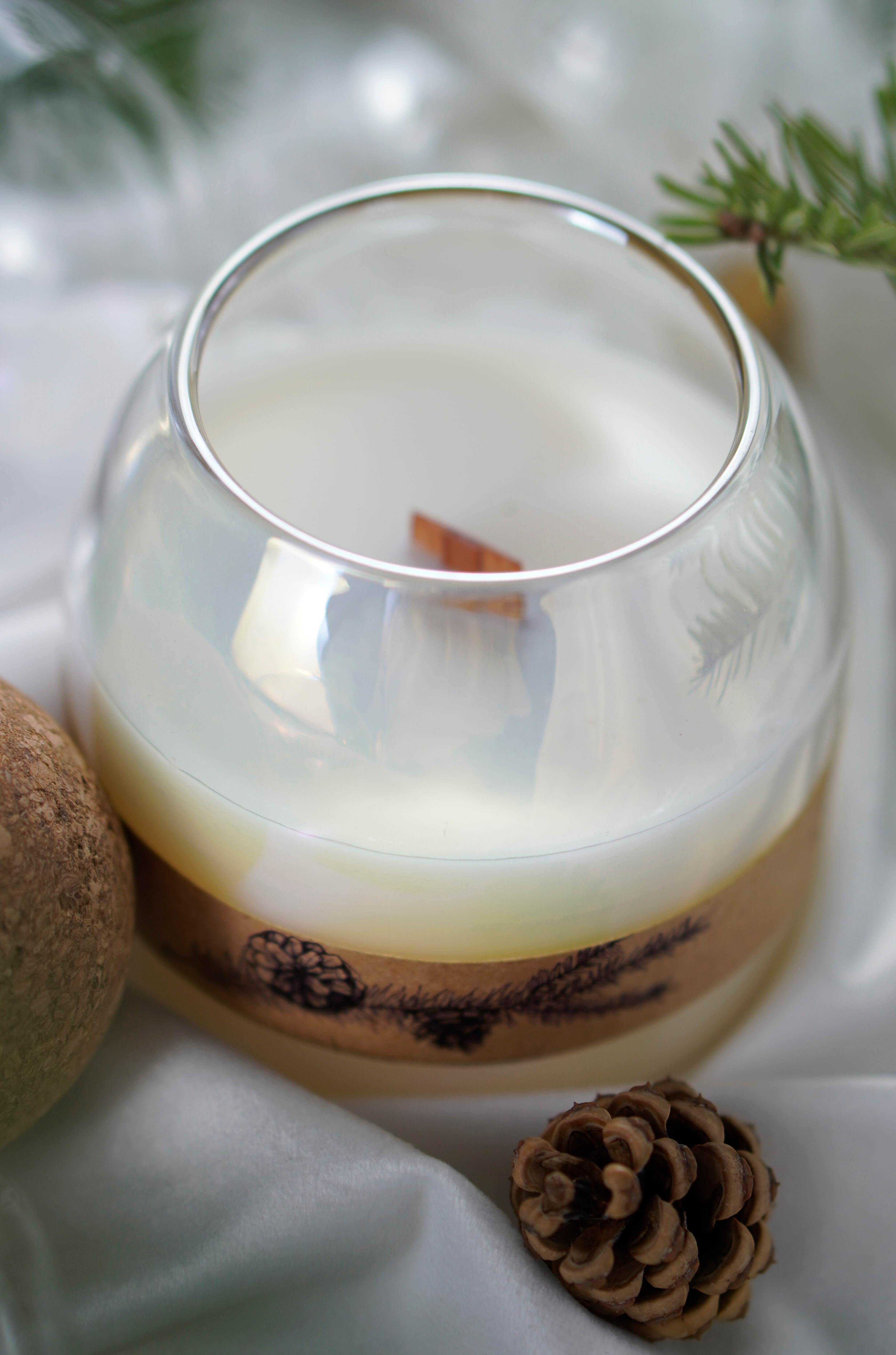 Materiale: ceara soia și cocos, fitil lemn