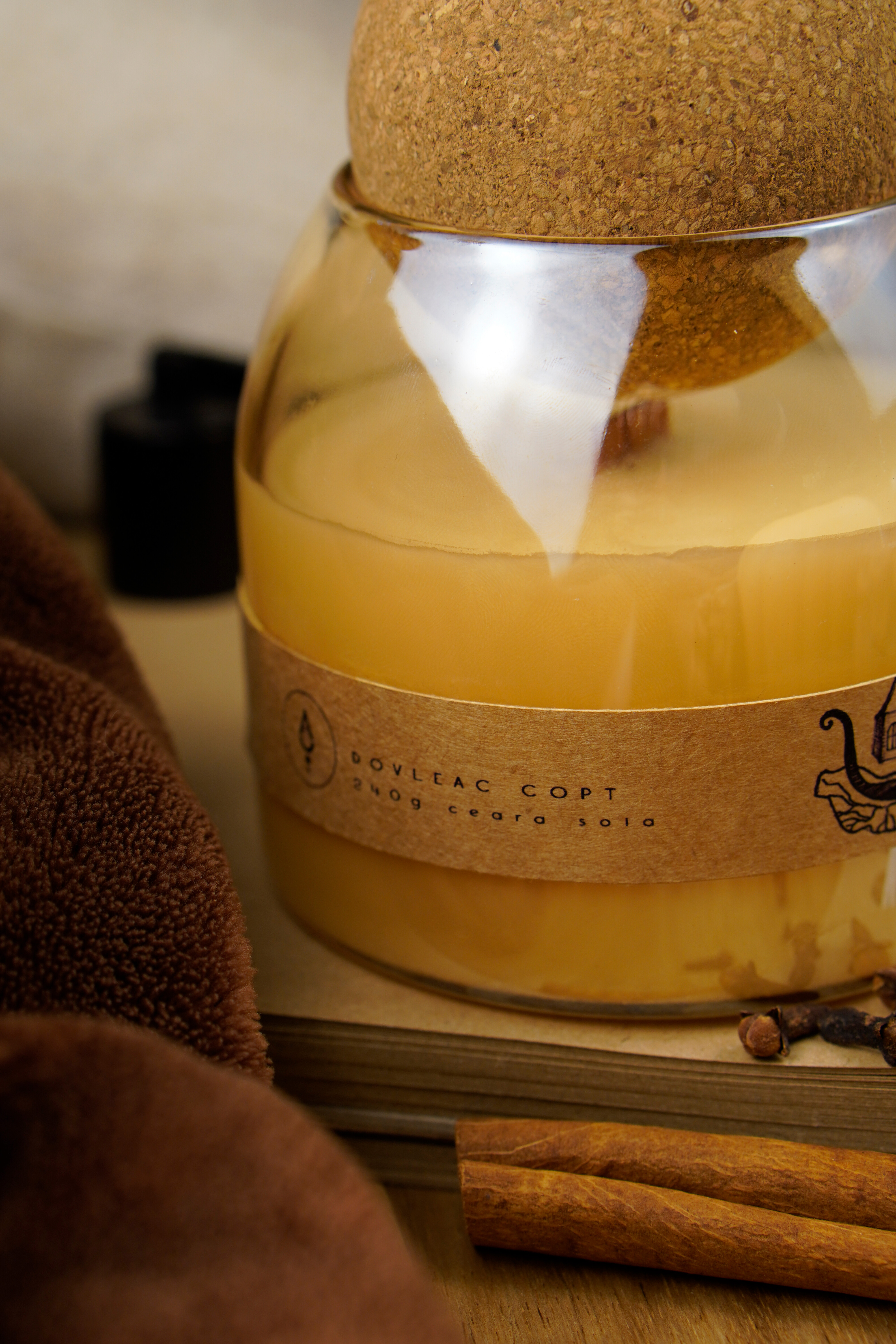 Materiale: ceara soia și cocos, fitil lemn